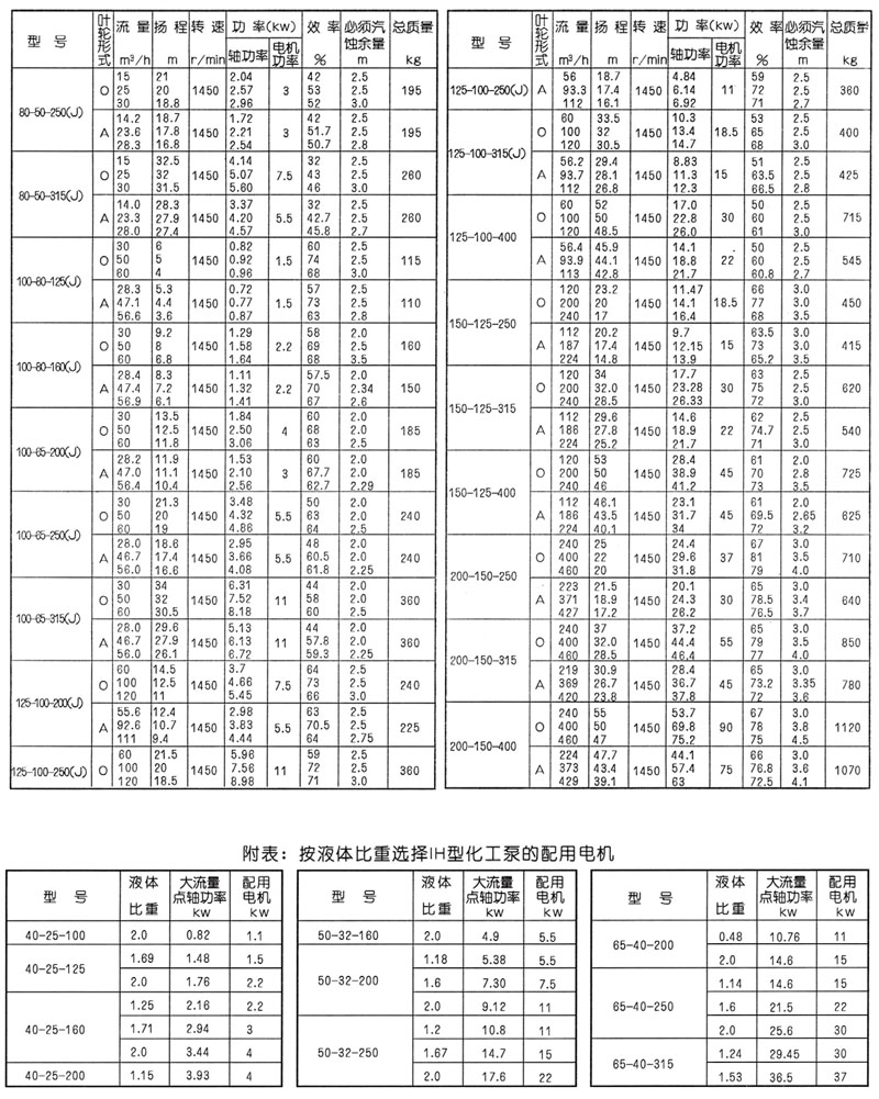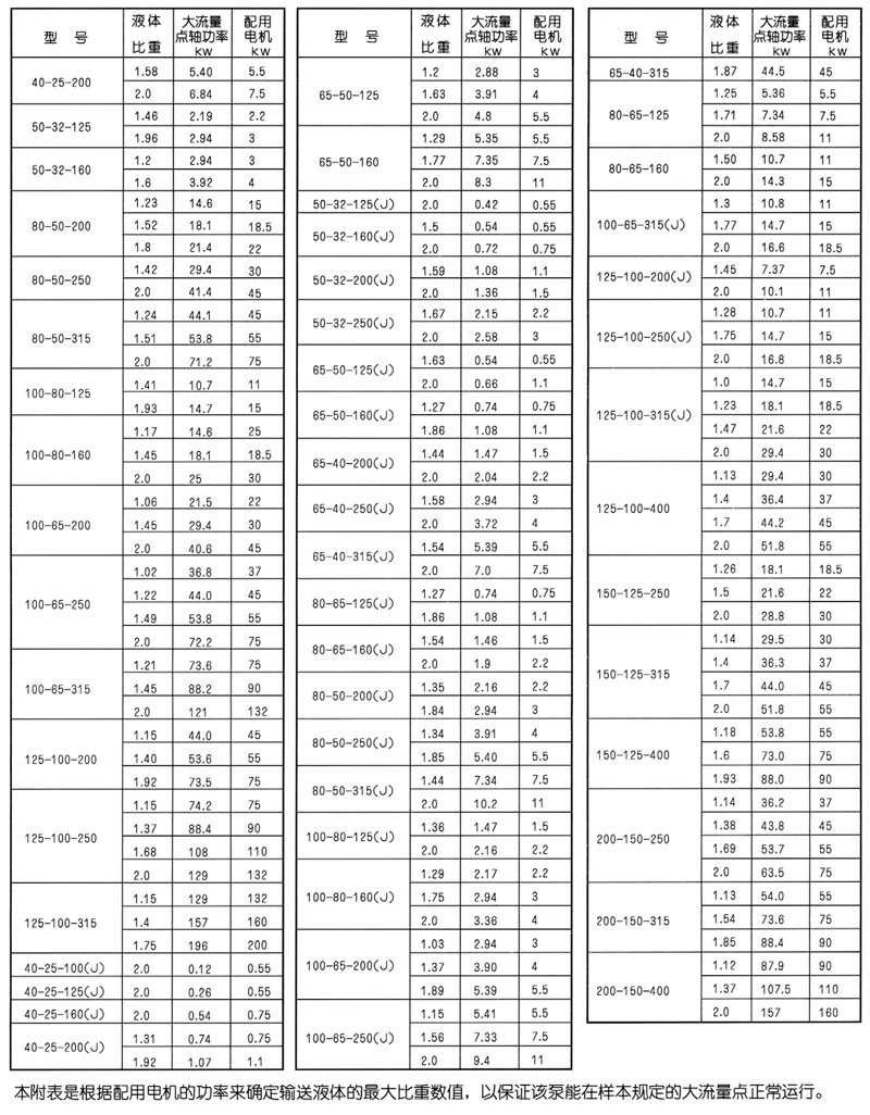 附表內列出(chū)了介質比重較大時電(diàn)機的選擇方法,供(gòng)用戶參(cān)考。