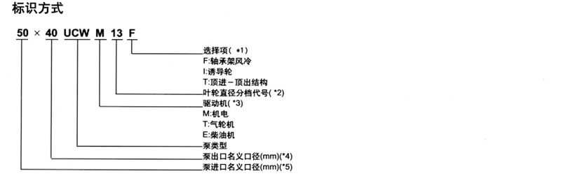 (*4)當泵進口和出口相時,進出口尺寸代號可不必重複寫,例如,200 UCWM 20可代表200 X200 UCWM 20.