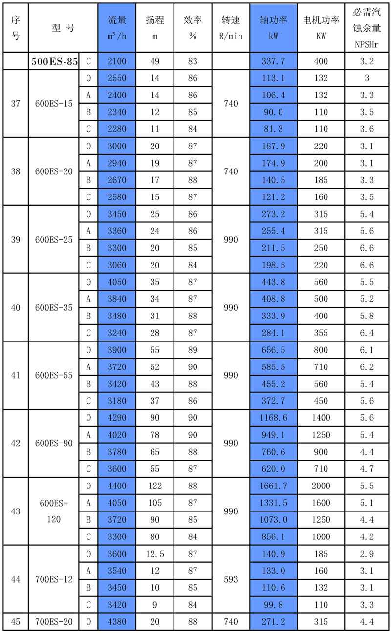 ES 型雙吸泵的(de)葉輪是采用將兩(liǎng)個相同的單吸式葉片背對式放置的結構。該結構左右對稱,液體從吸入室對稱地(dì)流入葉輪,產生的軸向力互相抵消,平衡(héng)了軸向力。葉輪(lún)的流道用砂(shā)輪(lún)等工具打(dǎ)磨的非常光滑。葉輪(lún)葉片的厚度均勻,在進口邊打磨的非常薄,葉片的進口邊設計成圓弧形,有利於提高泵的抗汽(qì)蝕性(xìng)能。